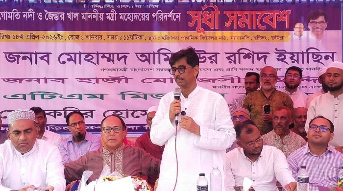 শনিবার (১৮ এপ্রিল) দুপুরে বুড়িচং উপজেলার ময়নামতি ইউনিয়নের হরিনধরা এলাকায় গোমতী নদী ও জৈন্তার খাল পরিদর্শন শেষে আয়োজিত এক সুধী সমাবেশে প্রধান অতিথির বক্তব্যে তিনি এ ঘোষণা দেন।