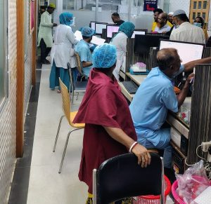 দুপুর ২টায় সিরিয়াল পাওয়ার পর আধা ঘণ্টার মধ্যেই সব পরীক্ষা-নিরীক্ষা সম্পন্ন হয়। কিন্তু দুর্ভাগ্যজনক হলেও সত্য, হেল্প ডেস্কের দায়িত্বে থাকা ব্যক্তি একই সঙ্গে রক্ত সংগ্রহের কাজ করায় পাঁচ ঘণ্টা পেরিয়ে গেলেও রিপোর্ট পাওয়া যায়নি। হেল্প ডেস্কে গিয়ে জানতে চাইলে তিনি জানান, তাঁর দুটি কাজ থাকায় ডেস্কে বসা সম্ভব হয় না।