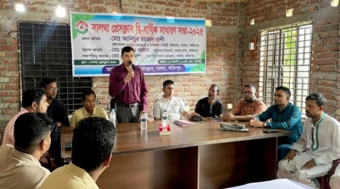 মোঃ ইলিয়াছ খান সালথ ফরিদপুর প্রতিনিধি: সালথা প্রেসক্লাবের দ্বি বার্ষিক সাধারণ সভায় বক্তব্য রাখছেন সালথা উপজেলার নির্বাহী অফিসার মোঃ আনিসুর রহমান বালী, ছবি দৈনিক যুগান্তর বাংলাদেশ আজ দুপুরে সালথা