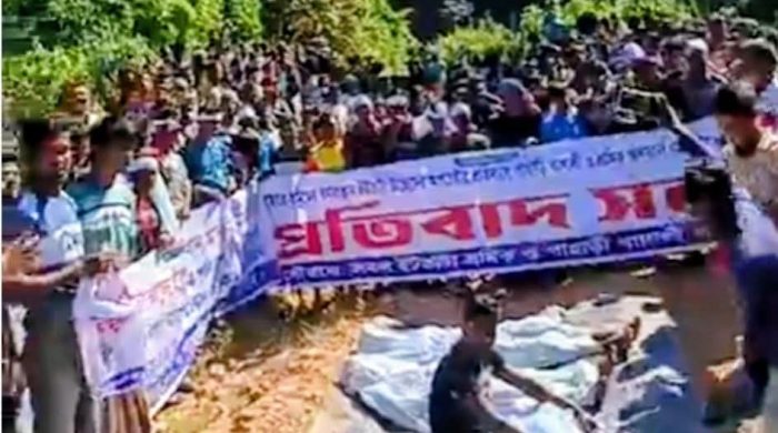 ক্রাইম রিপোর্টার মোঃ আবু বক্কর সিদ্দিক, বান্দরবান প্রতিনিধি বান্দরবান জেলার লামা উপজেলাধীন ফাইতং ইউনিয়নের শ্রমিকরা কর্মসংস্থান ধ্বংস না করার দাবিতে কাফনের কাপড় পড়ে আন্দোলন করছেন। রোববার ১৬ নভেম্বর ১০টা উপজেলার