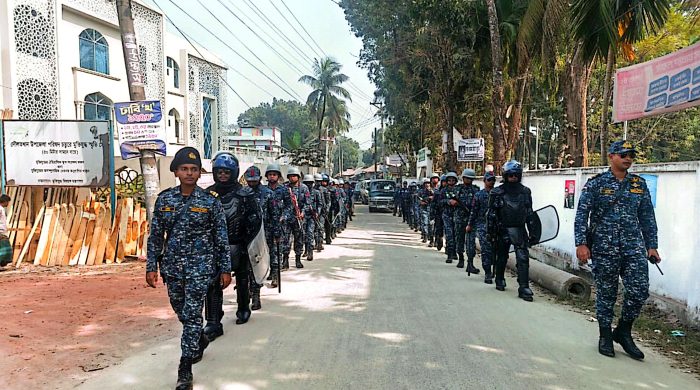 মো. মাকছুদুর রহমান পাটোয়ারী দৌলতখান ভোলা প্রতিনিধি: আসন্ন ত্রয়োদশ জাতীয় সংসদ নির্বাচনকে সামনে রেখে আইনশৃঙ্খলা পরিস্থিতি স্বাভাবিক রাখা এবং জনসাধারণের নিরাপত্তা নিশ্চিত করতে ভোলার দৌলতখান বাজারের প্রধান সড়ক ও গুরুত্বপূর্ণ