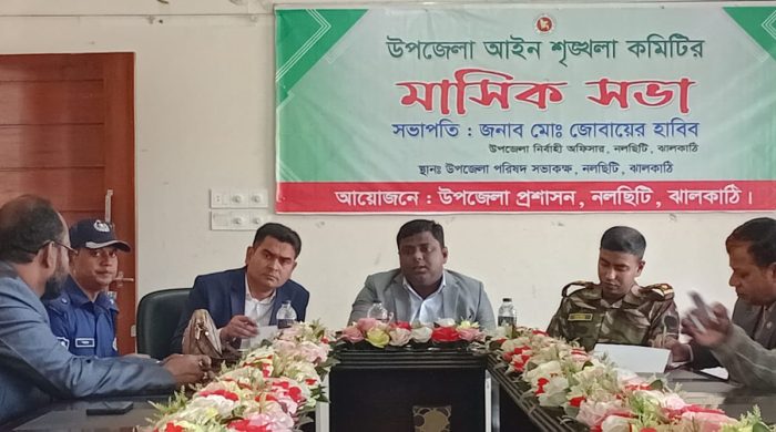 স্টাফ রিপোটারঃ মোঃ জাফর হোসেন নলছিটি প্রতিনিধি, ২৬ জানুয়ারী, ২০২৬- ঝালকাঠীর নলছিটি উপজেলায় আইন-শৃঙ্খলা কমিটির মাসিক সভা অনুষ্ঠিত হয়েছে। উপজেলা নির্বাহী অফিসার মোঃ জোবায়ের হাবিব এর সভাপতিত্বে উপজেলা পরিষদ সভাকক্ষে