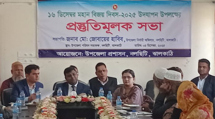 স্টাফ রিপোটারঃ- মোঃ জাফর হোসেন আজ ৪ ডিসেম্বর বুধবার সকাল ১১ ঘটিকায় নলছিটি উপজেলা পরিষদ মিলনায়তনে আগামী ১৬ ডিসেম্বর মহান বিজয় দিবস-২০২৫ উপলক্ষে ব্যাপক প্রস্তুতিমূলক সভা অনুষ্ঠিত হয়েছে। উপজেলা প্রশাসনের