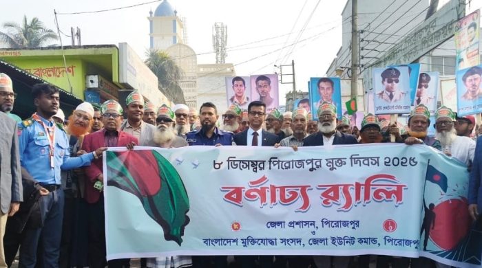 পিরোজপুর প্রতিনিধি নানা আয়োজনে সোমবার (৮ ডিসেম্বর) পিরোজপুর মুক্ত দিবস উদযাপন করা হয়েছে। সকাল সাড়ে ৯টায় জেলা প্রশাসন ও মুক্তিযোদ্ধা সংসদ জেলা ইউনিটের আয়োজনে কালেক্টরেট স্কুলের সামনে থেকে একটি বর্ণাঢ্য