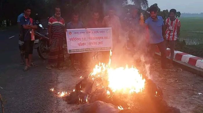 সুকমল চন্দ্র বর্মন (পিমল) ষ্টাফ রিপোর্টারঃ জয়পুরহাটের আক্কেলপুর উপজেলার ভালকি ব্রিজ এলাকায় একটি খাল থেকে অবৈধভাবে মাছ ধরার ঠুসি জাল জব্দ করে আগুনে পুড়িয়ে দিয়েছে স্থানীয় মৎস্য বিভাগ। সোমবার (১১